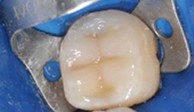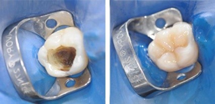 Fase riabilitativa. Previo pre-trattamento dei tessuti dentali con tecnica "total etching" (mordenzatura) ed grazie anche all’uso di uno specifico sistema adesivo smalto-dentinale, infine, si procede alla ricostruzione dell'elemento dentale per apposizione stratificata di resine composite cromatiche, microibride e nano riempite, secondo una tecnica definita "incrementale". Infine, la verifica delle caratteristiche anatomiche, occluso-gnatologiche dei contatti inter-occlusali (con i denti antagonisti) e di quelle funzionali della ricostruzione appena eseguita, le conferiranno la reale dignità riabilitativa. L'ultimo atto ricostruttivo-riabilitativo della Terapia Conservativa è quello della lucidatura e brillantatura della riabilitazione dentale, che se è stato eseguito “lege artis”, garantirà esteticamente un validissimo effetto camaleontico e di “camoufflage”, nonché una valida bio-integrazione anatomica, funzionale, cromatica ed estetica con l’intero apparato masticatorio.